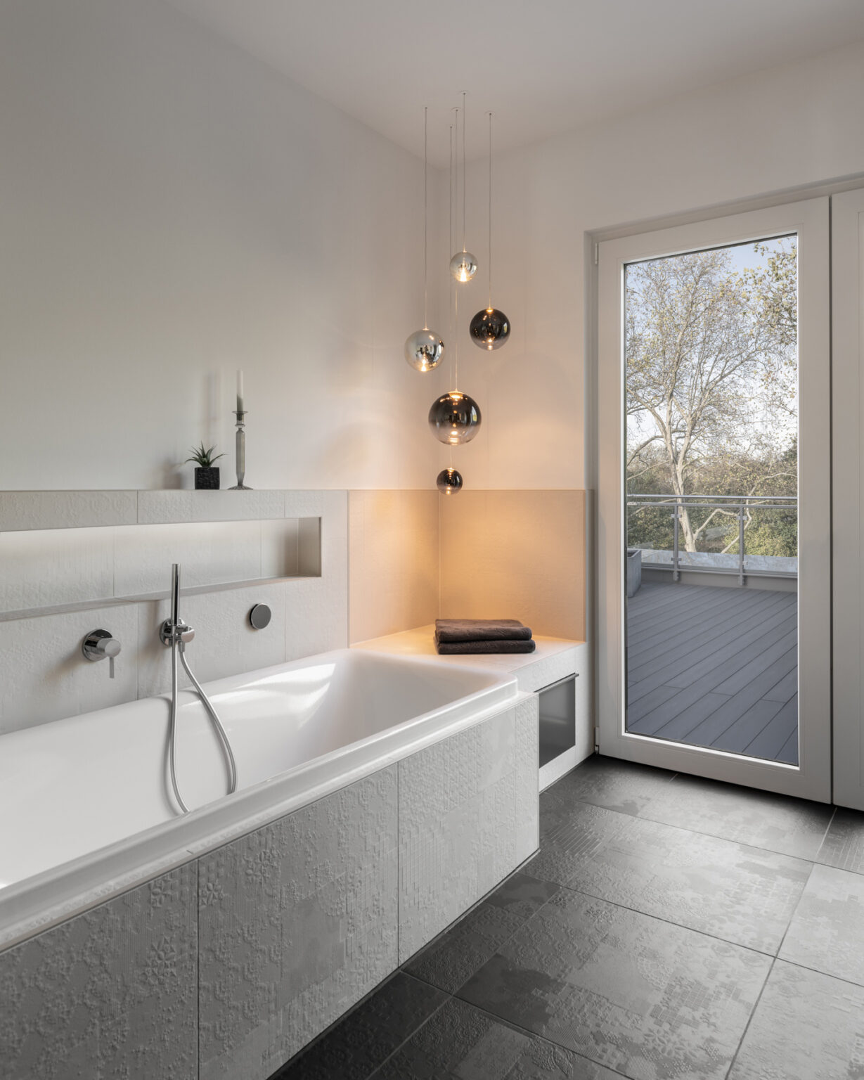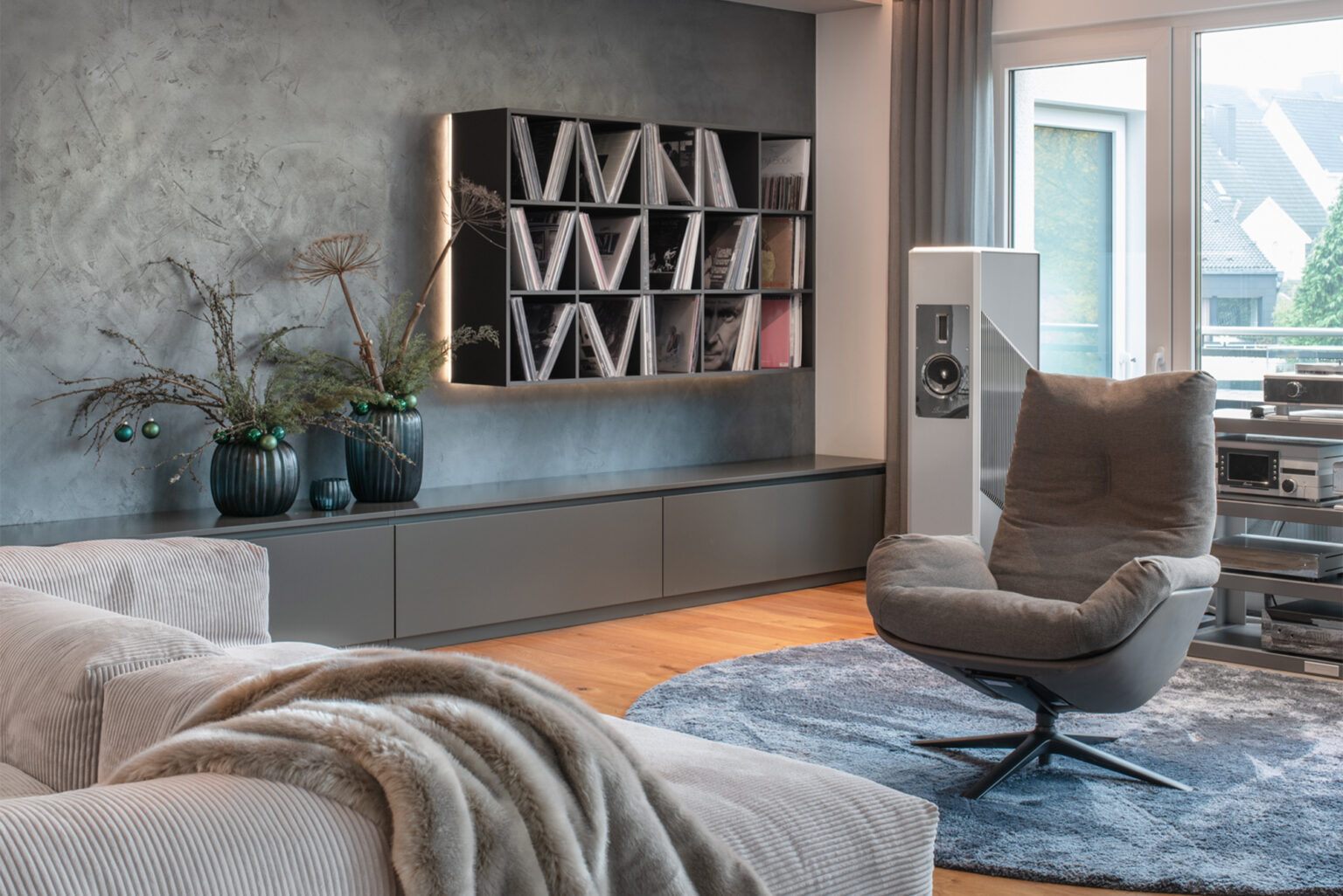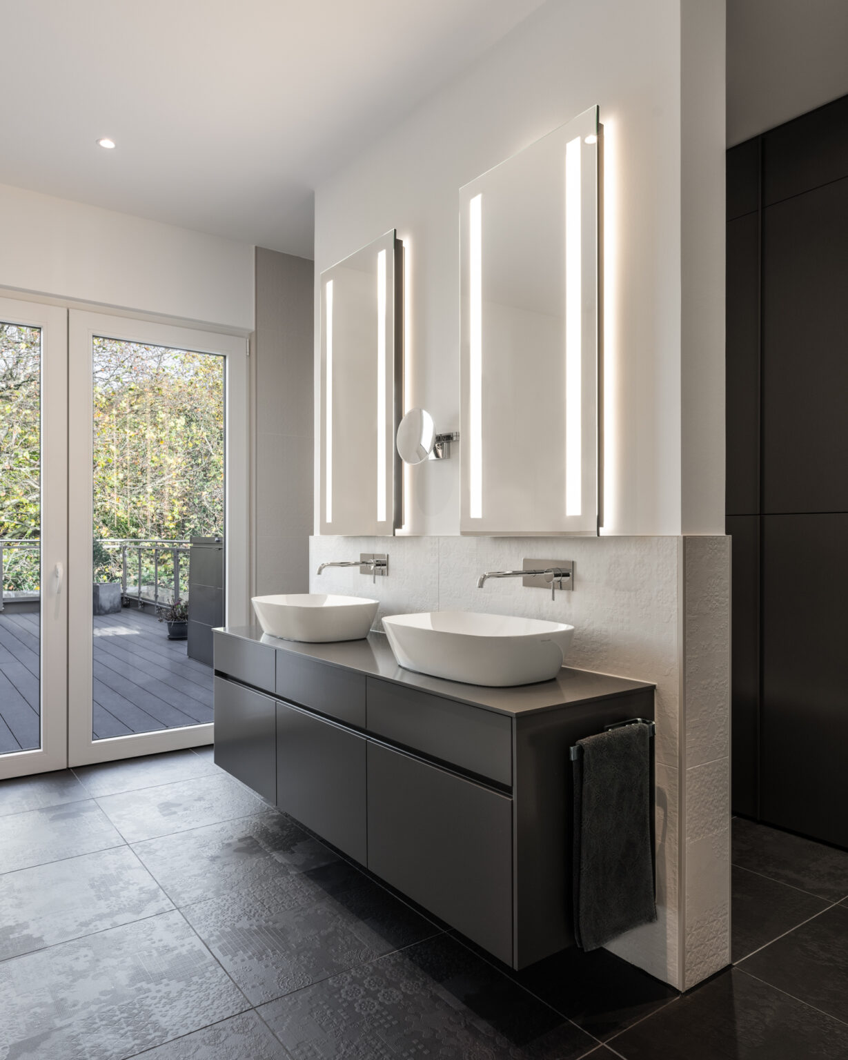Lichtdurchflutete Penthousewohnung in einem Neubau mit individuell gestaltetem und elegantem Design. Ein fein aufeinander abgestimmtes Licht-, Farb- und Materialkonzept sowie die Anfertigung der individuellen Möbel erzeugen eine moderne Behaglichkeit.